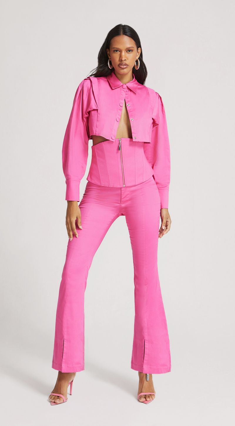 OUTLETLinhasColeçõesRoupasCalçasCalçasCalca Morena Rosa Clássica Cós Alto Com Fendas Pink