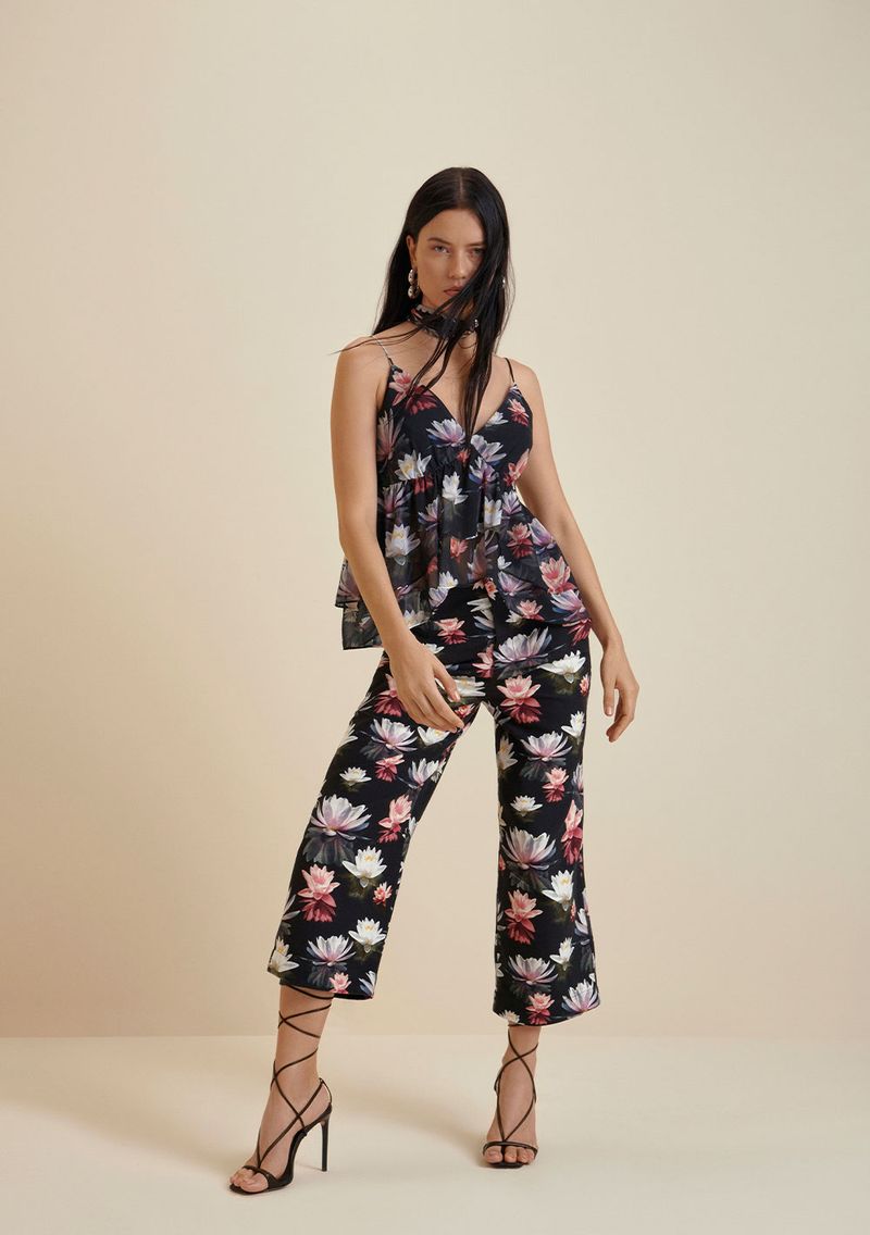 OUTLETLinhasColeçõesRoupasCalçasCalçasCalça Morena Rosa Comfort Reta Cós Alto Estampada Preto