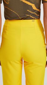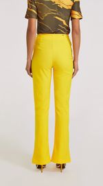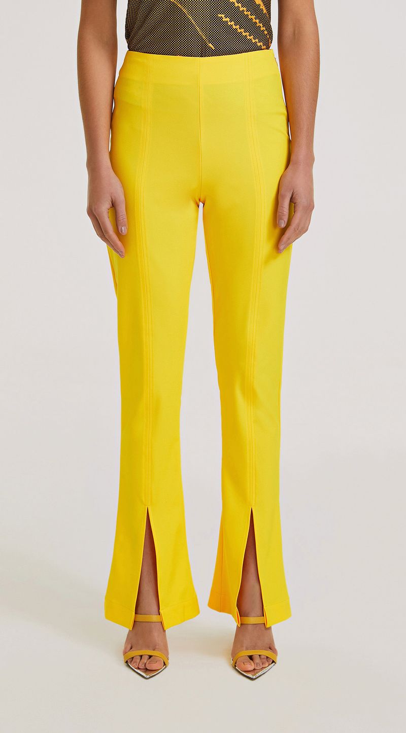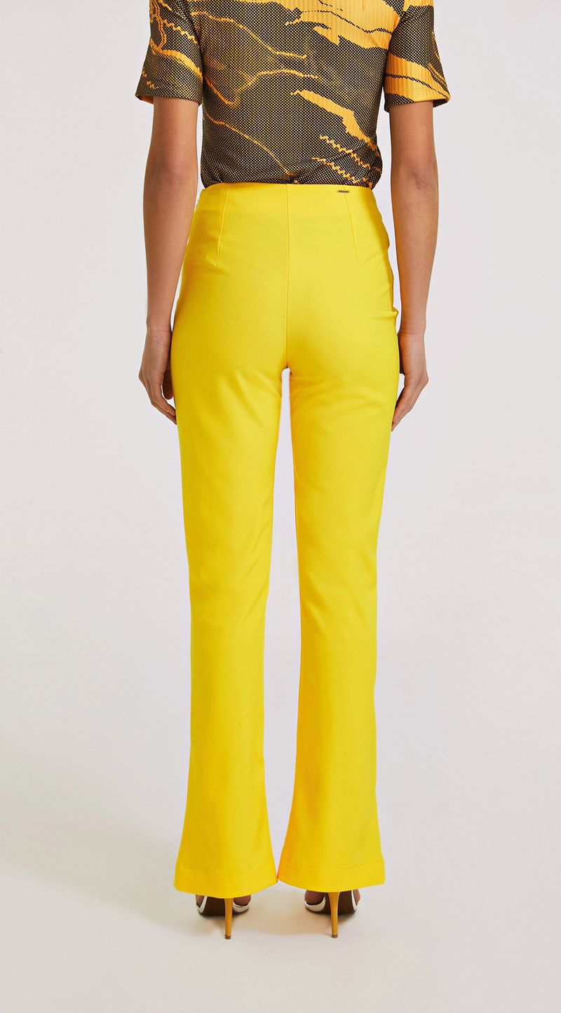 Calca Morena Rosa Flare Cós Intermediário Abertura Frente Amarelo