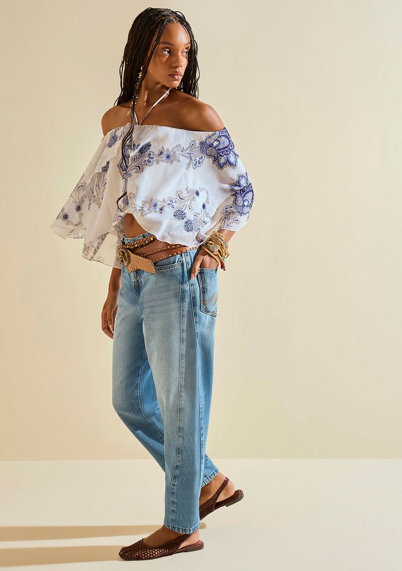 OUTLETLinhasColeçõesRoupasCalçasCalçasCalça Morena Rosa Mom Alta Azul