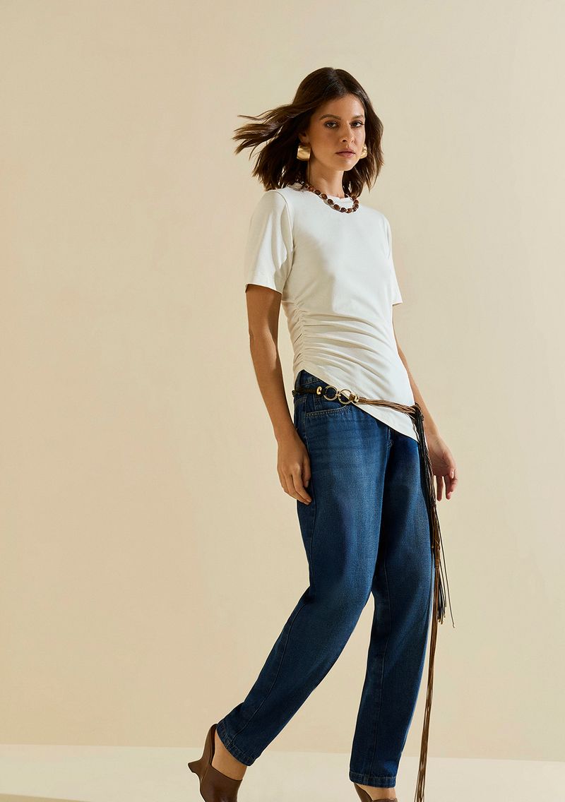 A Calça Morena Rosa Mom Alta Azul é a peça que toda mulher moderna precisa em seu guarda-roupa. Com um corte mom que valoriza as curvas e uma cintura alta que proporciona conforto e estilo, essa calça em jeans é perfeita para diversas ocasiões, do trabalho a um encontro casual. O tom azul vibrante traz uma energia única, refletindo o espírito livre e ousado da mulher brasileira. Combine-a com uma blusa leve e sandálias para um look descontraído ou aposte em um salto e acessórios para um visual mais elegante. A coleção "À flor da pele" exalta a brasilidade, trazendo um toque de sofisticação a cada detalhe. Os acessórios não acompanham as peças.
