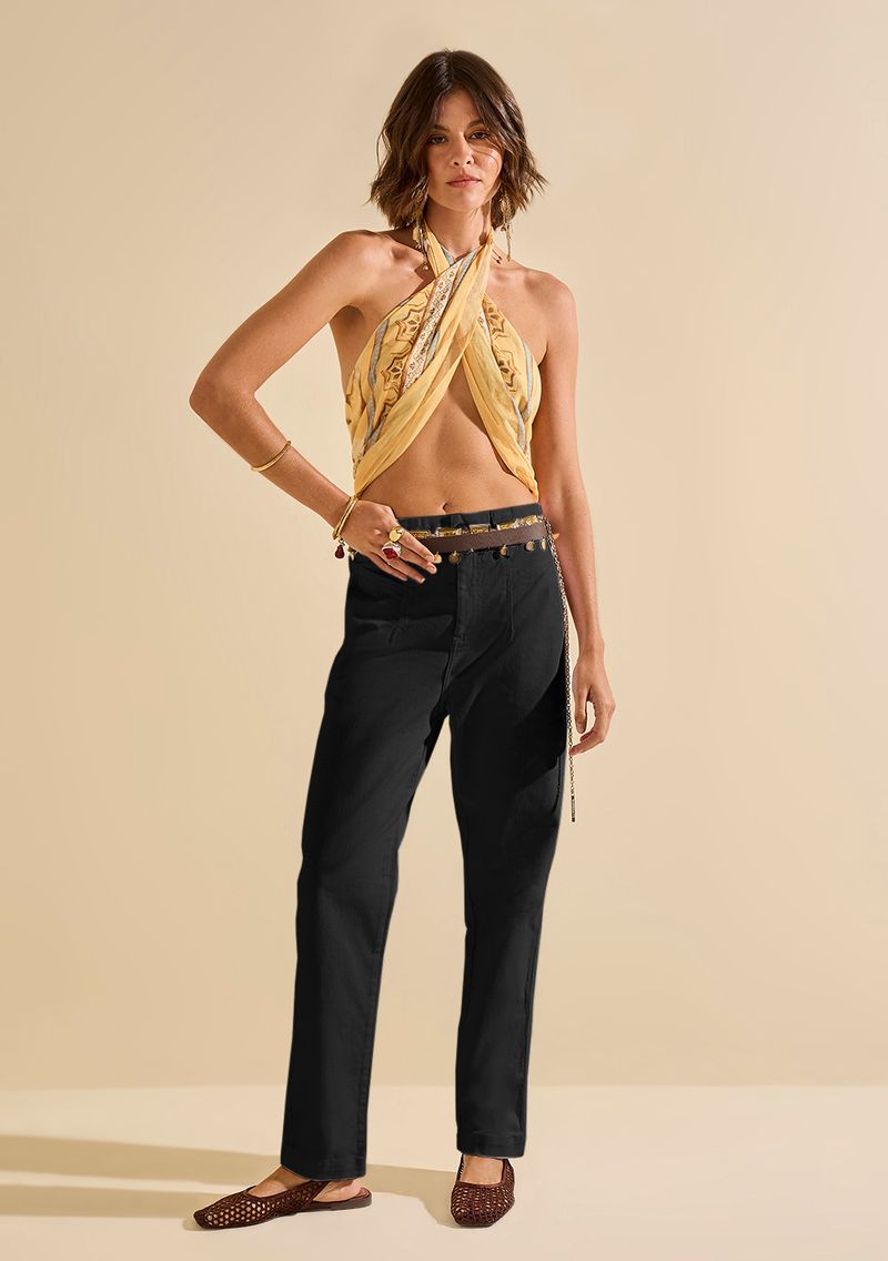 A Calça Morena Rosa Mom Alta Preto é a escolha perfeita para a mulher moderna e confiante que busca aliar estilo e conforto. Com um design encantador em sarja, esta calça destaca a silhueta feminina com elegância e atitude. Inspirada na coleção 'Ela é Carioca!', ela reflete a leveza e a energia vibrante do verão, perfeita para compor looks inesquecíveis. Combine-a com blusas leves e acessórios dourados para um visual sofisticado e cheio de bossa. Produzida com 99% algodão e 1% elastano, é ideal para o seu dia a dia dinâmico, mantendo o conforto e a autenticidade. Acessórios não acompanham as peças.