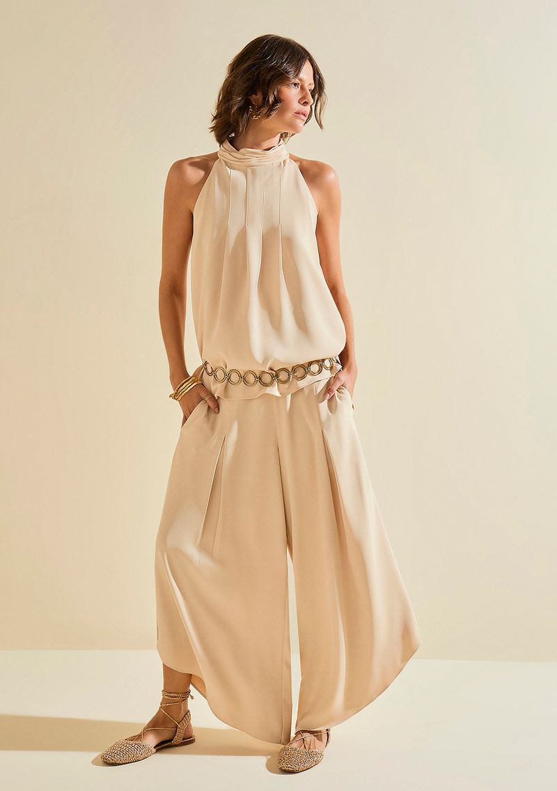 Calça Morena Rosa Pantacourt Alta Bege: elegância e frescor se encontram nesta peça essencial para o seu guarda-roupa. Feita em crepe, com elastano, ela oferece um caimento perfeito e conforto excepcional. O design pantacourt é ideal para transitar do trabalho a eventos sociais com sofisticação. O tom bege versátil permite combinações com blusas leves e acessórios dourados, destacando seu charme e autenticidade. Parte da coleção 'Ela é Carioca', esta calça celebra a brasilidade e o estilo vibrante das mulheres modernas. Aposte na sofisticação e versatilidade da Morena Rosa e sinta-se poderosa em qualquer ocasião. *Acessórios não acompanham as peças.