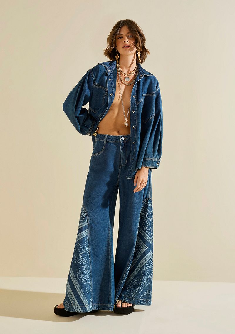 OUTLETLinhasColeçõesRoupasCalçasCalçasCalça Morena Rosa Pantalona Alta Azul