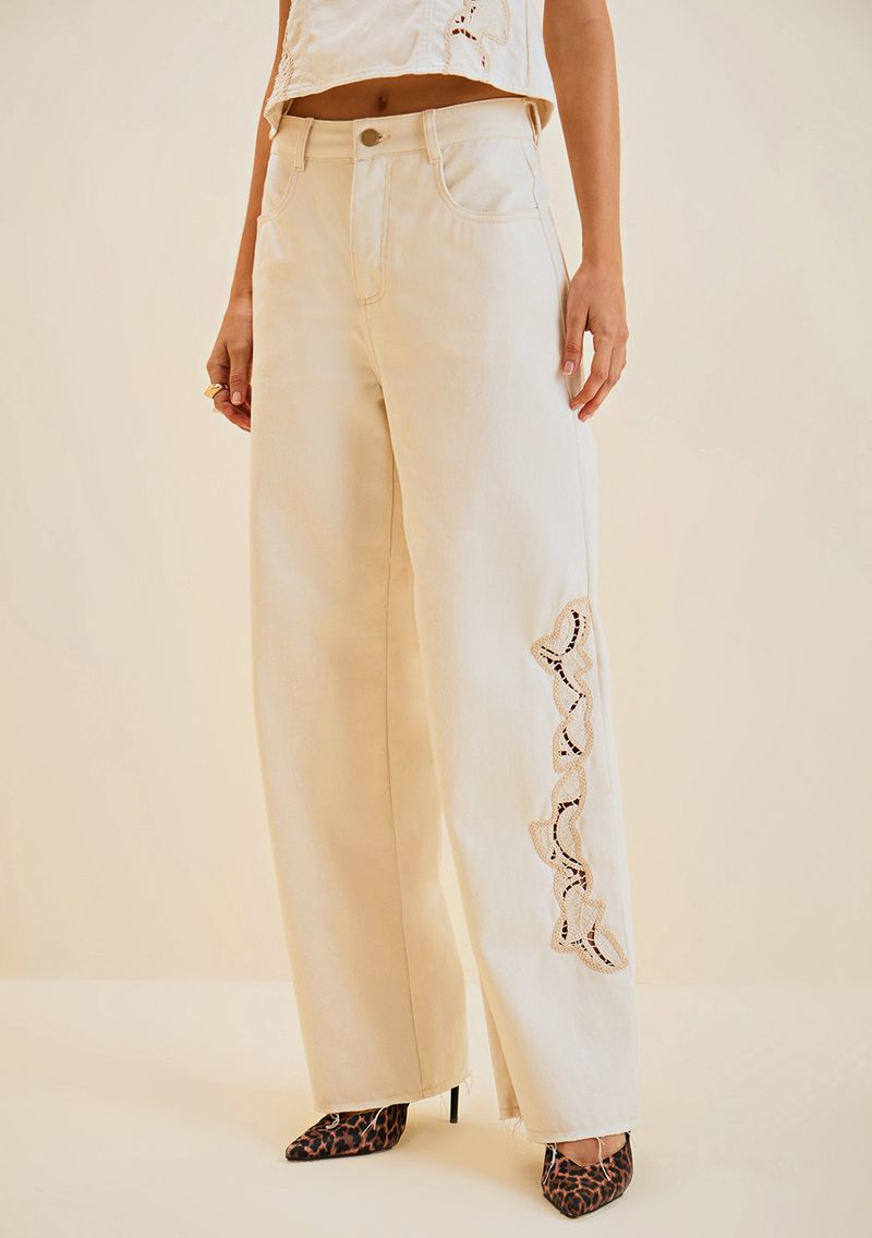 OUTLETLinhasColeçõesRoupasCalçasCalçasCalça Morena Rosa Pantalona Alta Off White