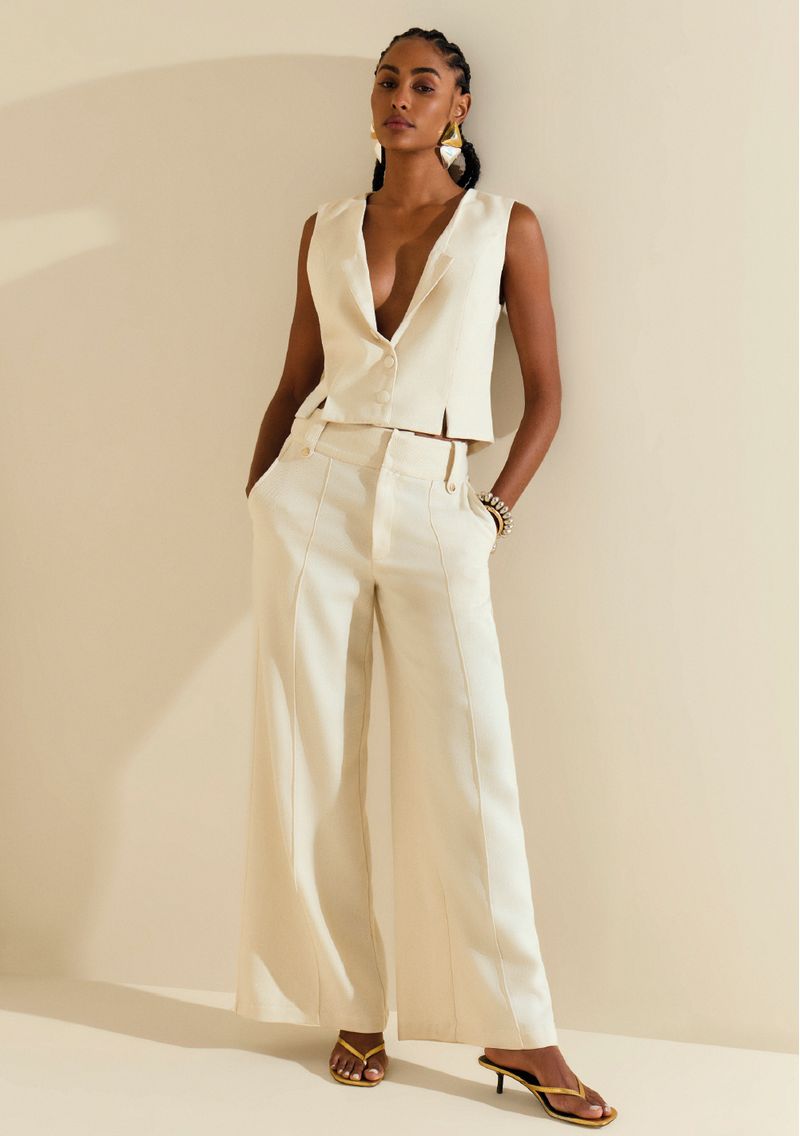 Calça Morena Rosa Pantalona Alta Off White é a escolha perfeita para a mulher moderna que busca elegância e versatilidade. Com design sofisticado e corte pantalona de cintura alta, esta peça em alfaiataria é ideal para ocasiões casuais ou eventos sociais, trazendo um toque de leveza e sofisticação ao seu visual. Confeccionada em algodão de alta qualidade, oferece conforto e estilo, permitindo combinações com blusas florais ou tops sofisticados. A coleção Verão 2026 da Morena Rosa, inspirada na vibração de Pernambuco, celebra a brasilidade com peças que exalam charme e autenticidade. Acesse o site e transforme seu guarda-roupa com essa peça imprescindível. *Acessórios não acompanham as peças.