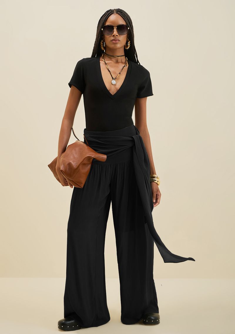 OUTLETLinhasColeçõesRoupasCalçasCalçasCalça Morena Rosa Pantalona Alta Preto
