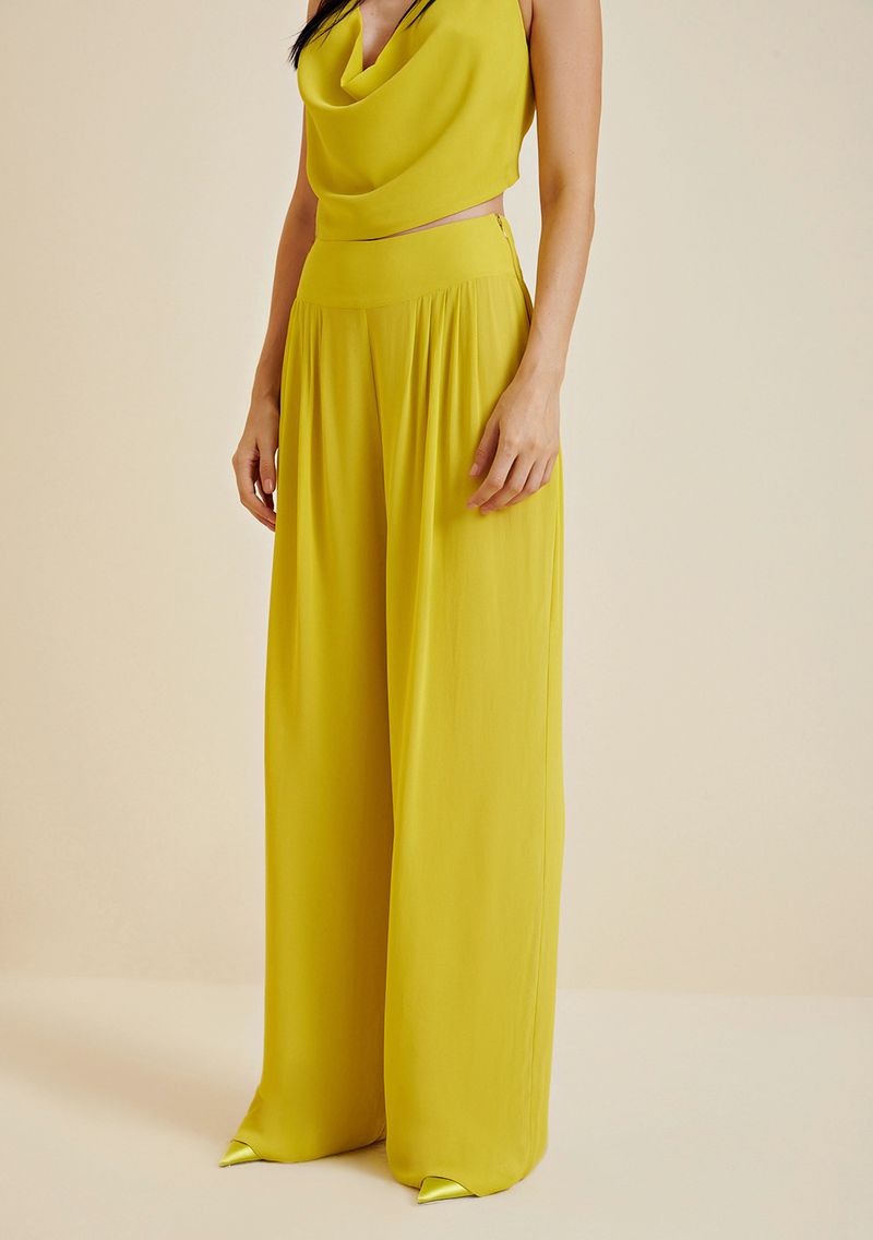 Calça Morena Rosa Pantalona Cós Alto Com Pregas Verde
