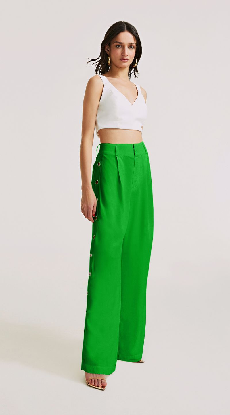 Calca Morena Rosa Pantalona Cós Alto Detalhe Lateral Verde