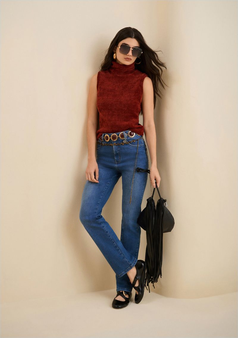 OUTLETLinhasColeçõesRoupasCalçasCalçasCalça Morena Rosa Reta Alta Azul