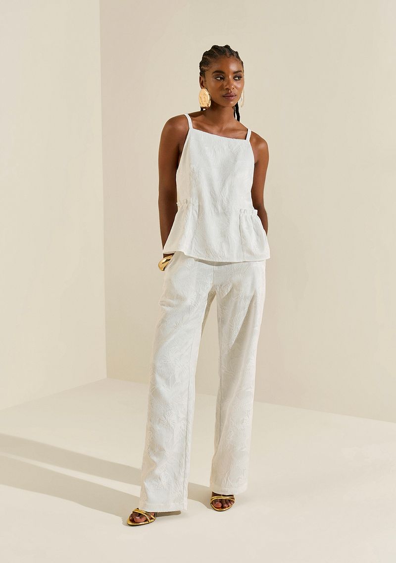 Calça Morena Rosa Reta Alta Off White