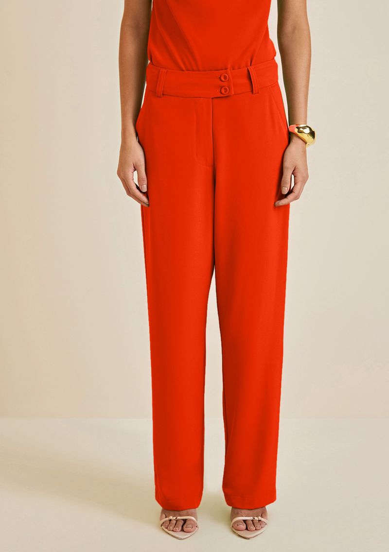 Calça Morena Rosa Reta Cós Alto Bolso Faca Laranja