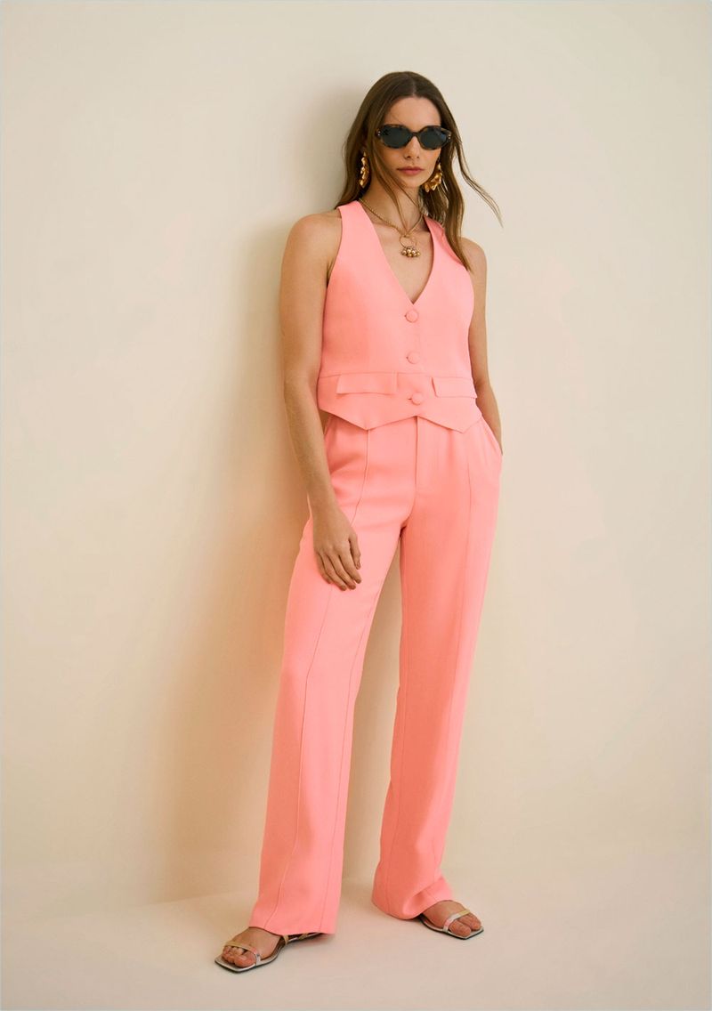 OUTLETLinhasColeçõesRoupasCalçasCalçasCalça Morena Rosa Reta Cós Alto Com Bolso Rosa