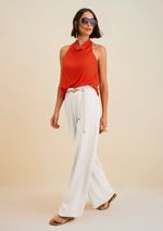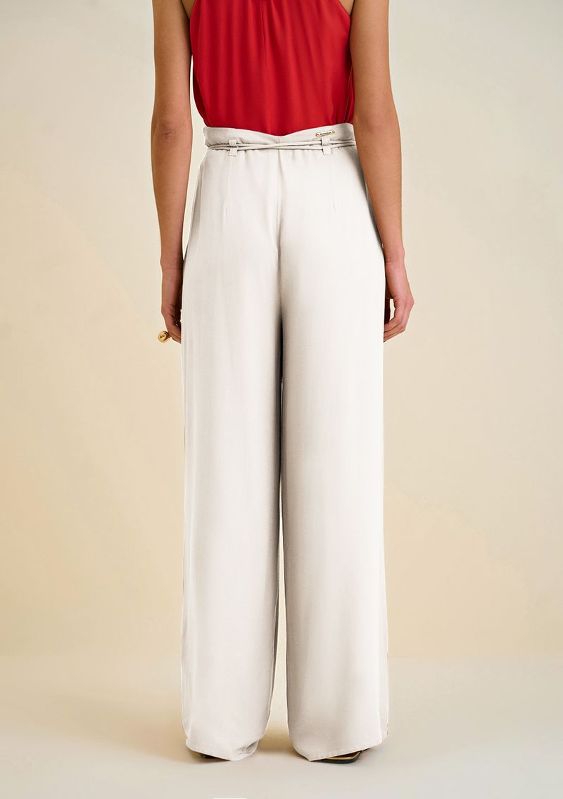 OUTLETLinhasColeçõesRoupasCalçasCalçasCalça Morena Rosa Reta Cós Alto Com Cinto Off White