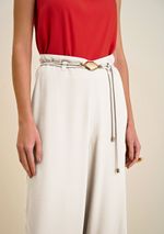 Calça Morena Rosa Reta Cós Alto Com Cinto Off White