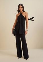 OUTLETLinhasColeçõesRoupasCalçasCalçasCalça Morena Rosa Reta Cós Alto Com Cordão Preto