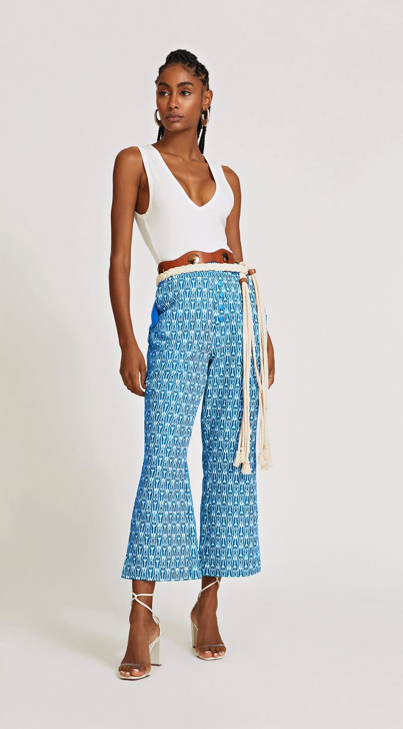 OUTLETLinhasColeçõesRoupasCalçasCalçasCalca Morena Rosa Reta Cós Alto Com Recorte Azul