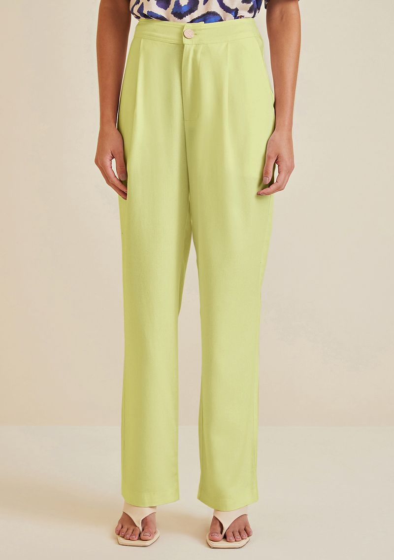 Calça Morena Rosa Reta Cós Alto Detalhe Bolso Verde Claro