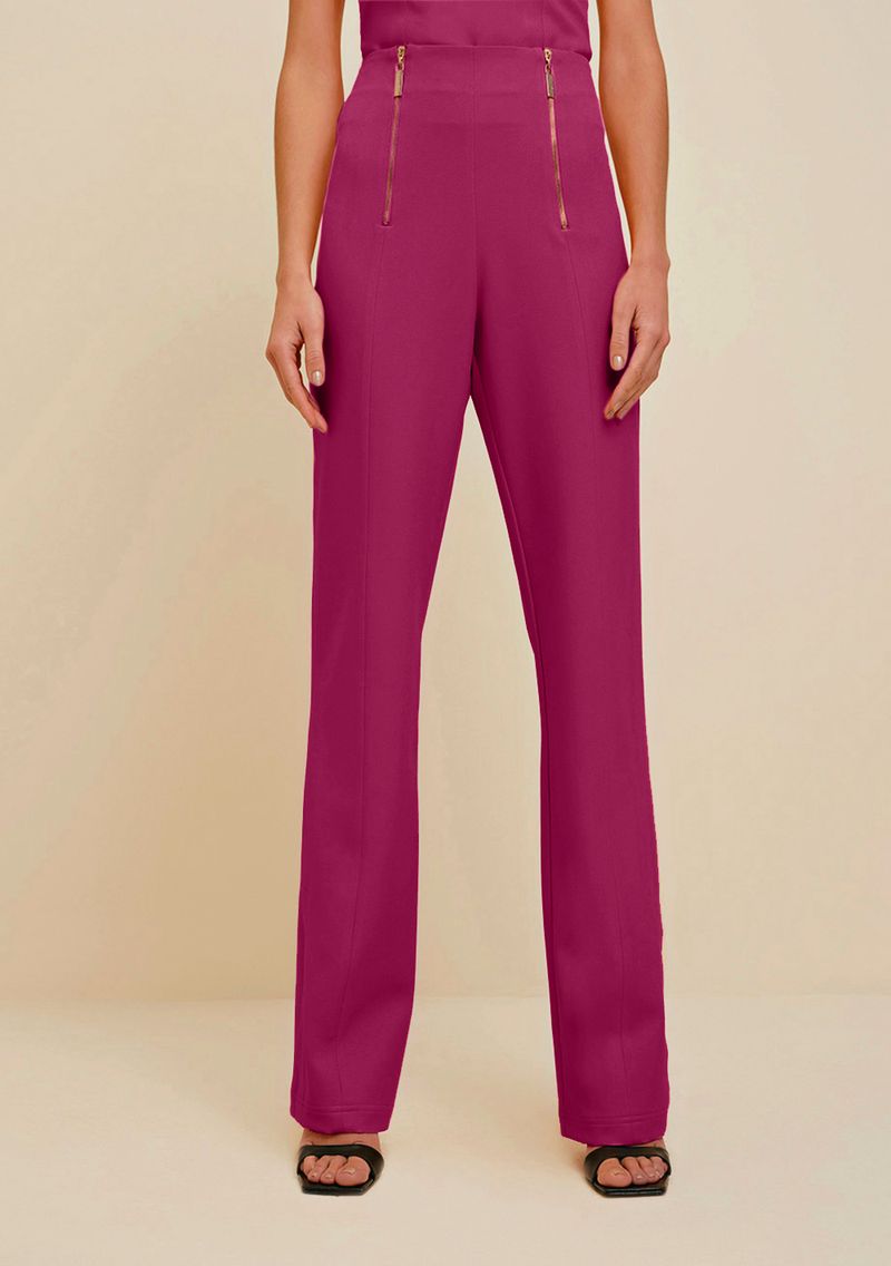 Calça Morena Rosa Reta Cós Alto Detalhe Zíper Rosa