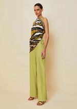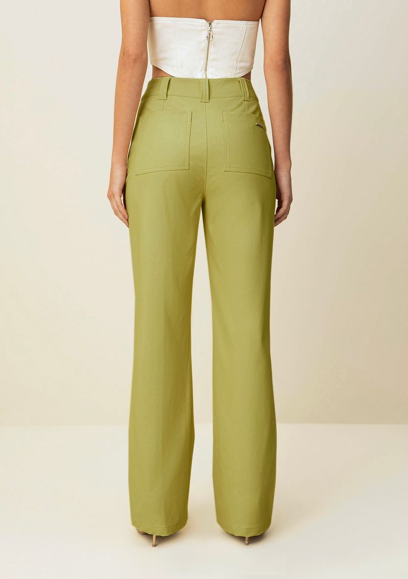 Calca Morena Rosa Reta Cós Alto Zíper Duplo Frente Verde Claro