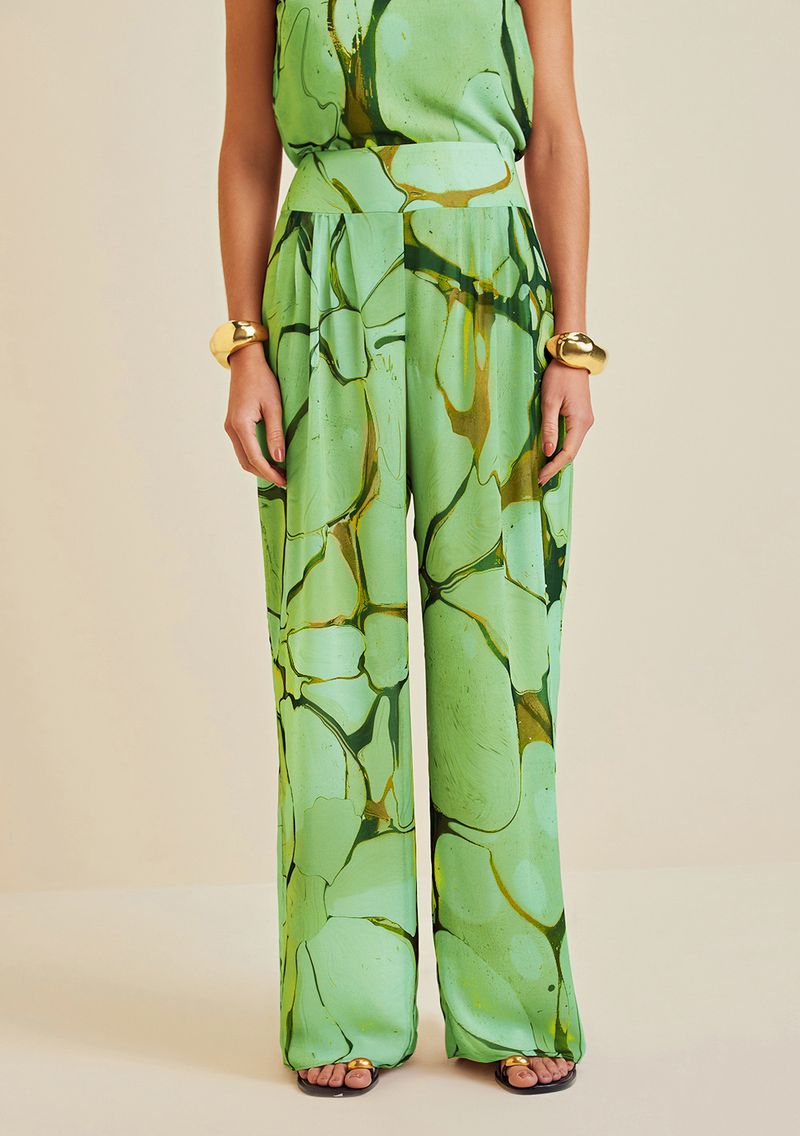Calça Morena Rosa Reta Cós Alto Zíper Lateral Verde