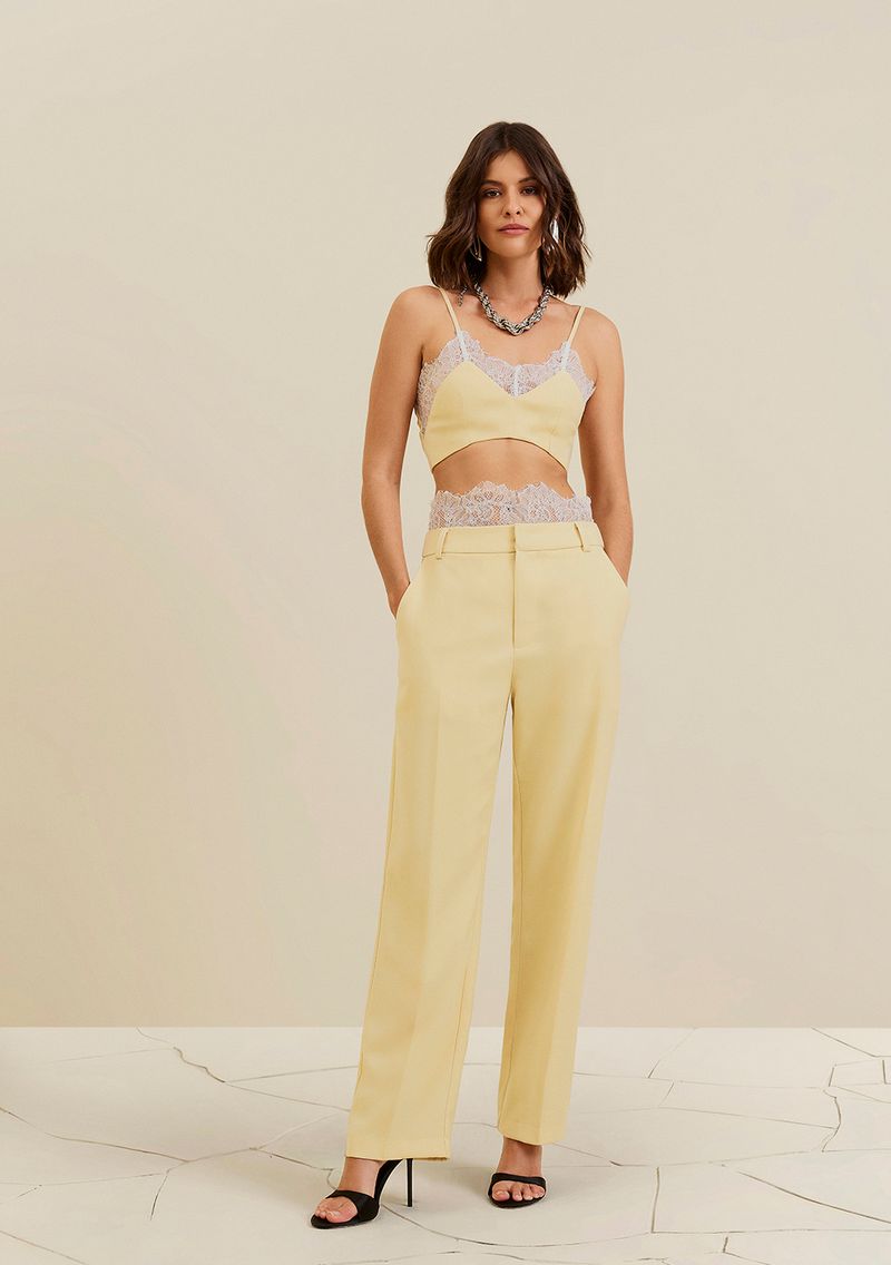 LinhasColeçõesRoupasCalçasCalçasCalça Morena Rosa Reta Média Amarelo