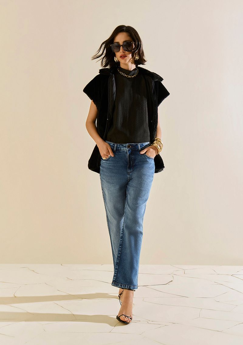 Calça Morena Rosa Reta Média Azul