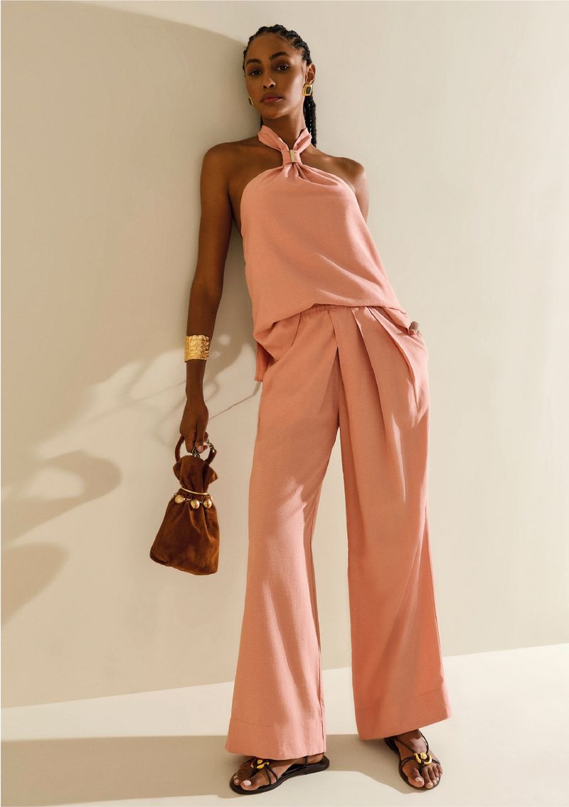 LinhasColeçõesRoupasCalçasCalçasCalça Morena Rosa Reta Média Rosa