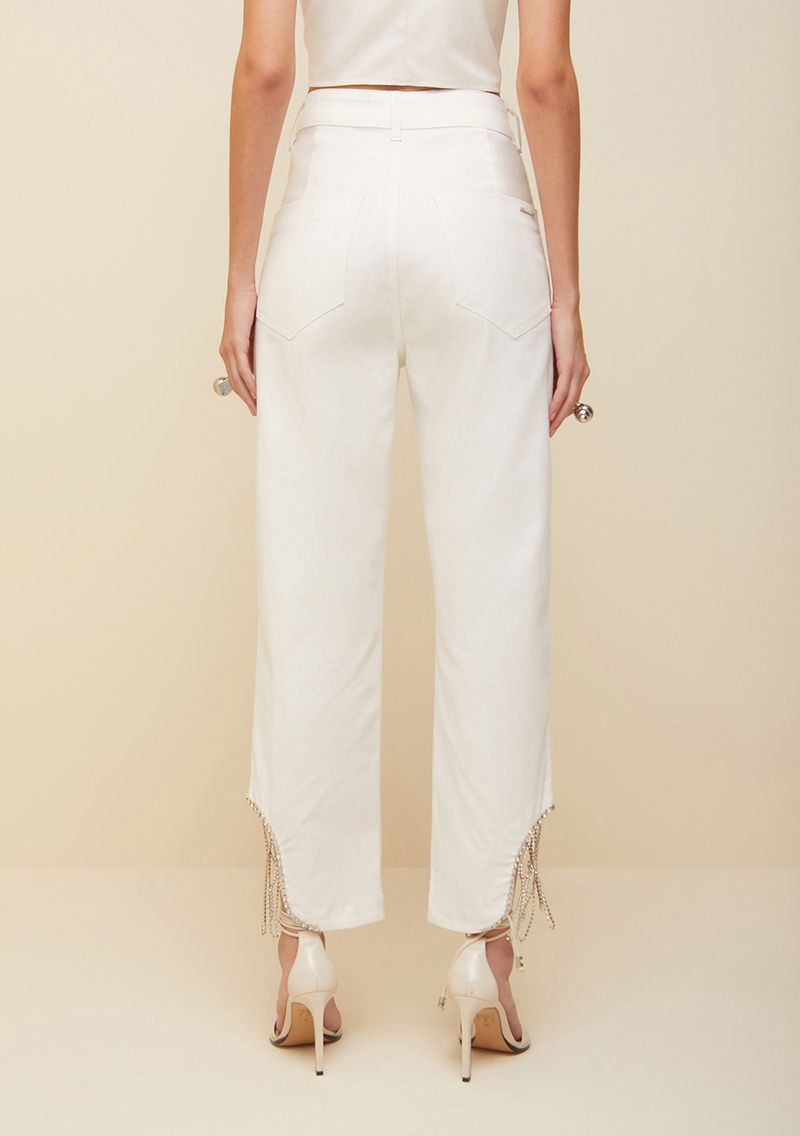 Calca Morena Rosa Reta Renata Cós Alto Detalhe Pedraria Off White