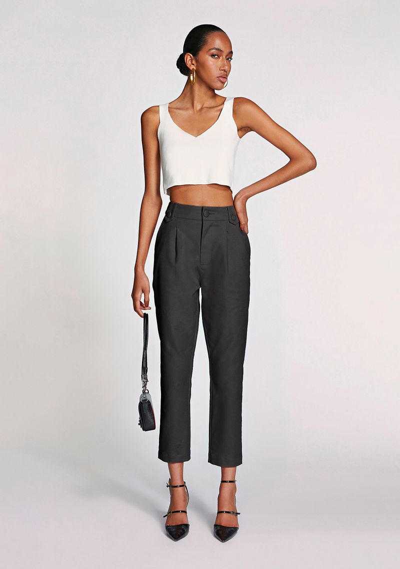 OUTLETLinhasColeçõesRoupasCalçasCalçasCalca Morena Rosa Skinny Alfaiataria Cós Alto Bolso Faca Preto