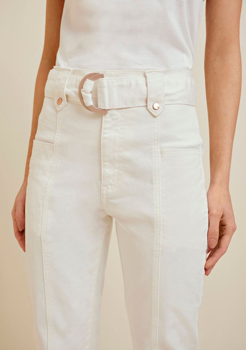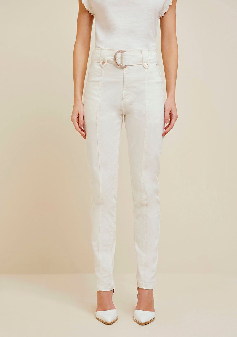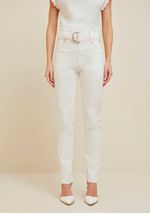 Calça Morena Rosa Skinny Isabelli Cós Alto Com Faixa Cru