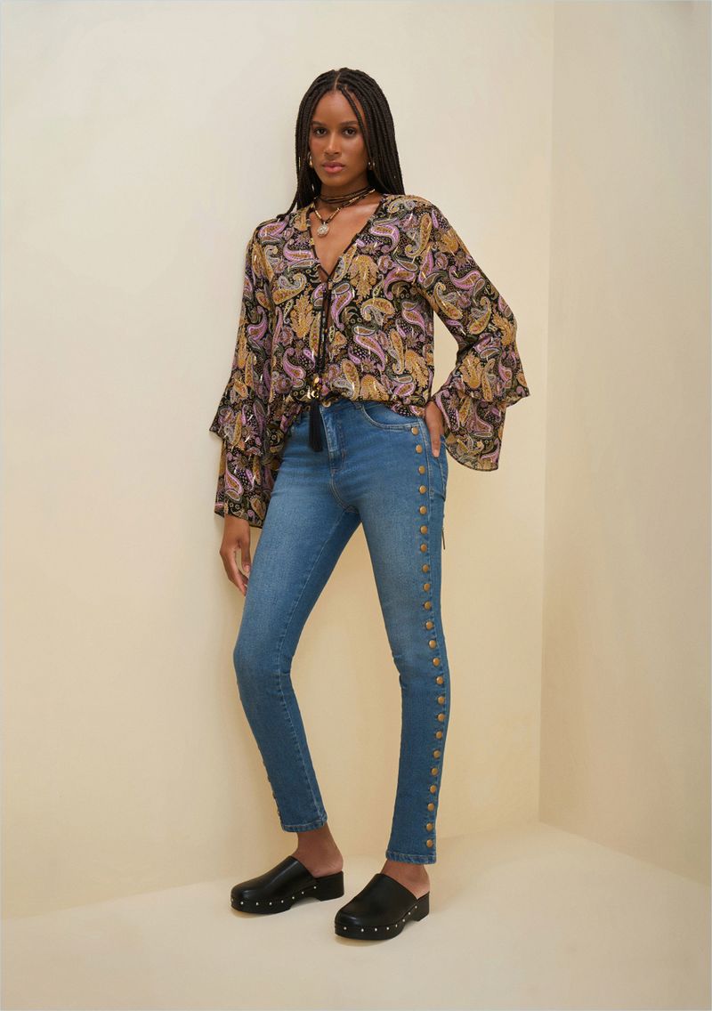 Eleve seu guarda-roupa com a Calça Morena Rosa Skinny Média Azul. Esta peça, feita de jeans de alta qualidade, combina algodão, elastomultiéster e elastano, proporcionando um ajuste perfeito que abraça suas curvas com delicadeza. Ideal para transitar do escritório ao jantar especial, sua versatilidade permite combinações com blusas fluidas e acessórios dourados, criando um look boho chic. Inspirada na essência boêmia e nos tons da natureza, esta calça é parte de uma coleção que celebra a força e a leveza. Acompanhe seu estilo vibrante e sofisticado e brilhe em qualquer ocasião. Os acessórios não acompanham as peças.