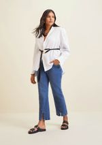 Calça Morena Rosa Straight Cós Alto Abertura Barra Jeans