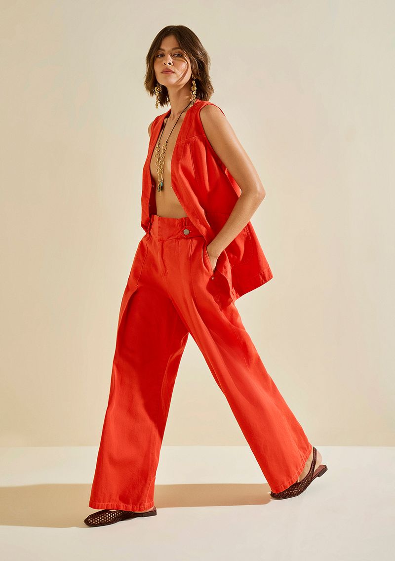 Calça Morena Rosa Wide Alta Vermelho