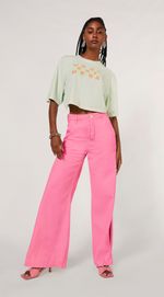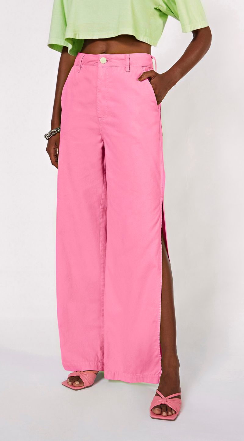 Calca Morena Rosa Wide Cós Alto Abertura Lateral Rosa