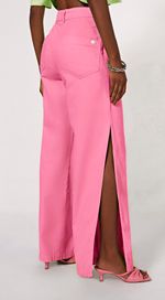 OUTLETLinhasColeçõesJeansJeansCalçasCalca Morena Rosa Wide Cós Alto Abertura Lateral Rosa
