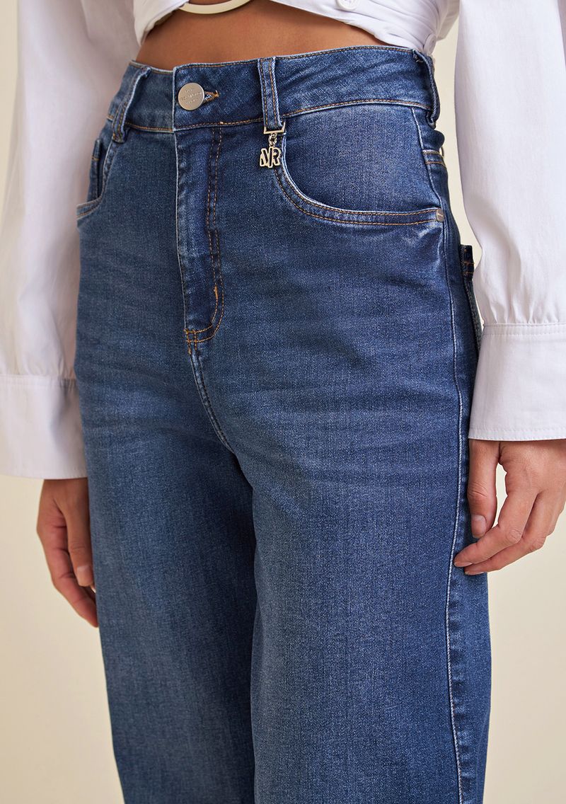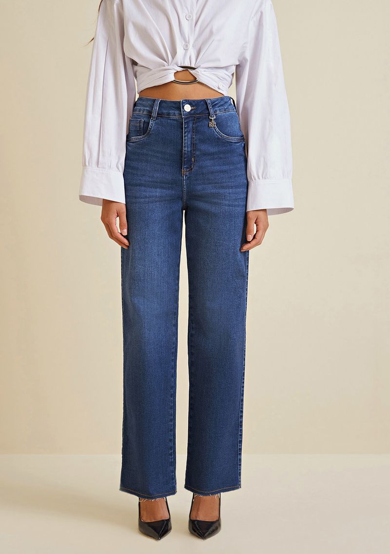 Calça Morena Rosa Wide Leg Thaila Cós Alto Barra Refilada Jeans