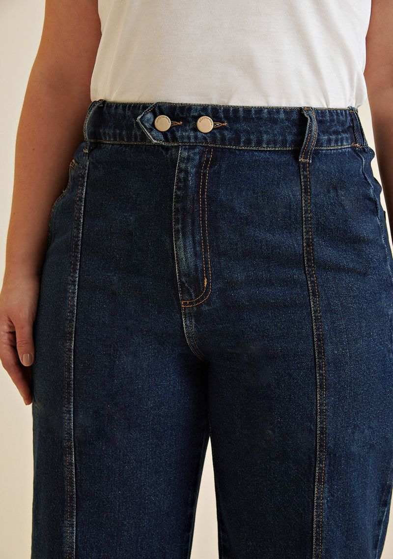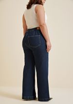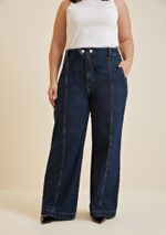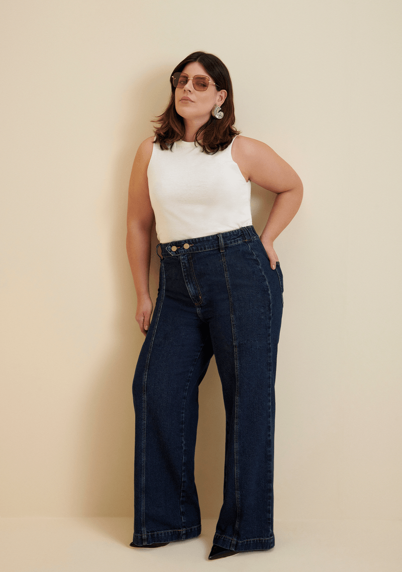 Calça Morena Rosa Wide Leg Thaila Cós Alto Detalhe Cós Jeans