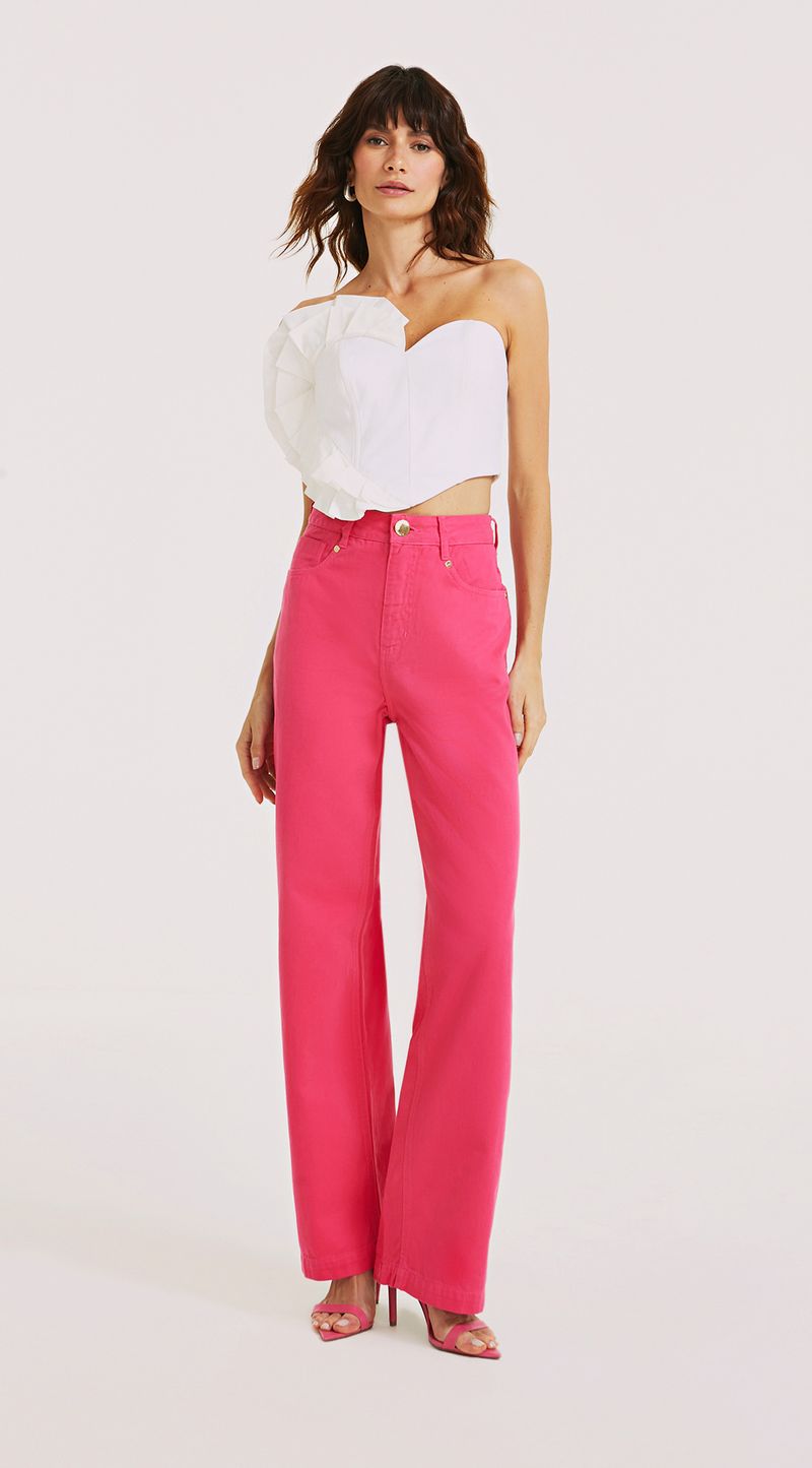 OUTLETColeçõesCalçasCalca Wide Cós Alto Bolso Coração Pink