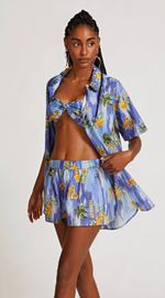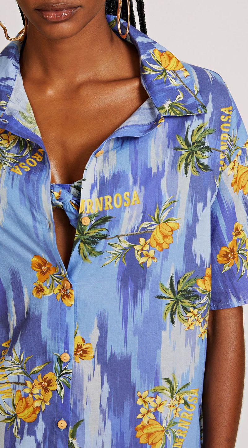 OUTLETLinhasPraiaSaídasCamisa Morena Rosa Manga Curta Fenda Lateral Azul