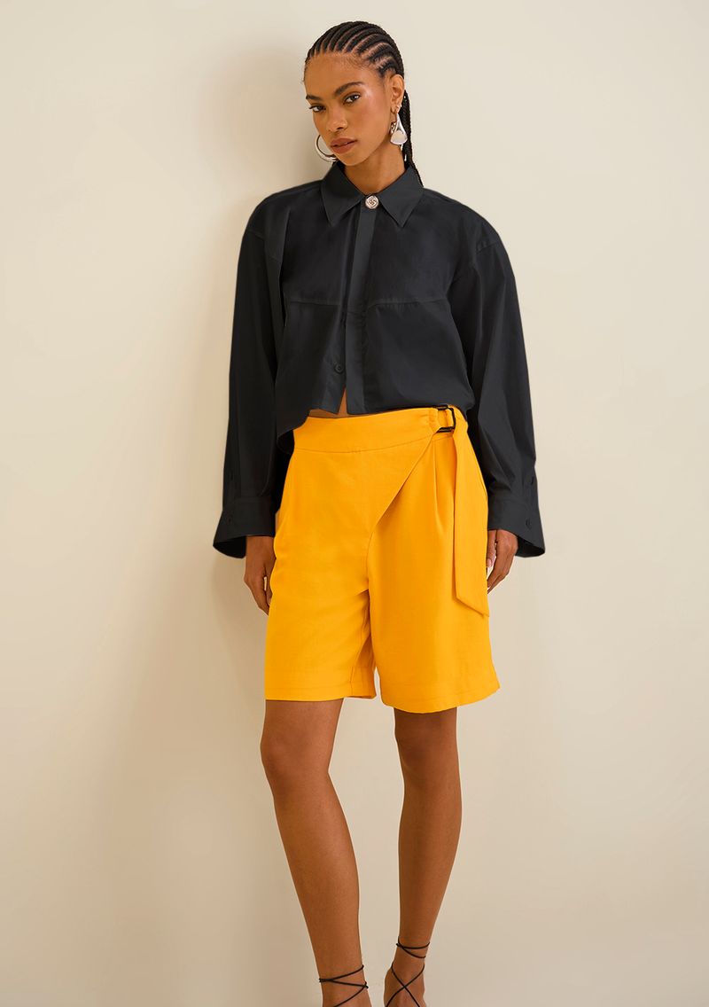 Camisa Morena Rosa Manga Longa Com Botões Preto