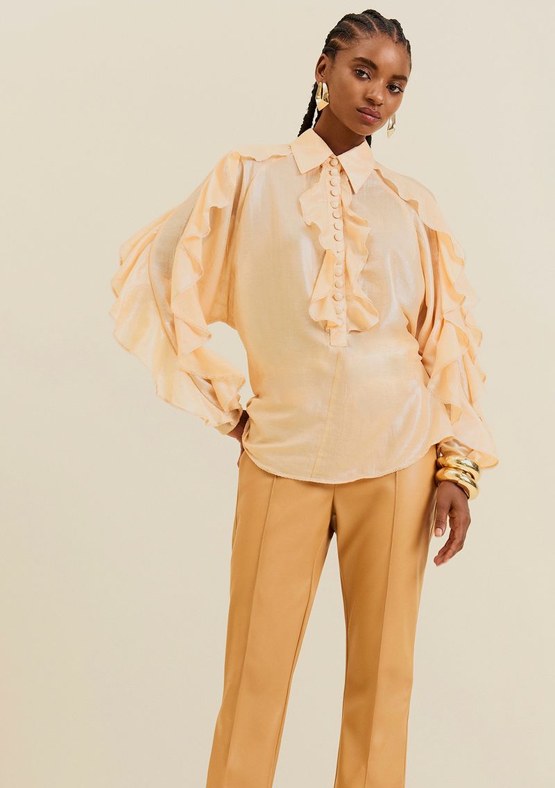 As camisas da Morena Rosa são peças funcionais que transitam em diversas ocasiões do dia. Para o trabalho, peças em alfaiataria são o match perfeito para compor com a camisa, enquanto peças com texturas e cores vibrantes da coleção desconstroem o visual sério para momentos casuais. Invista! *Os acessórios não acompanham a peça*