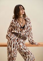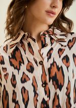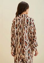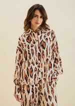 Camisa Morena Rosa Solta Gola Clássica Manga Longa Padrão Bege