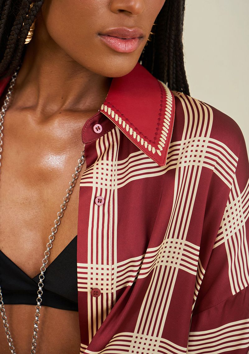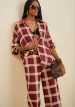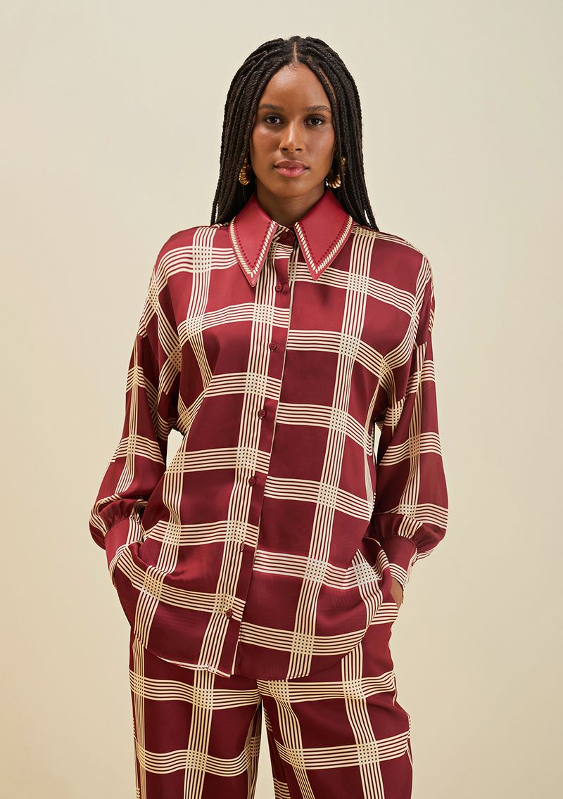 OUTLETLinhasColeçõesRoupasCamisasCamisasCamisa Morena Rosa Solta Gola Clássica Manga Longa Padrão Bordo