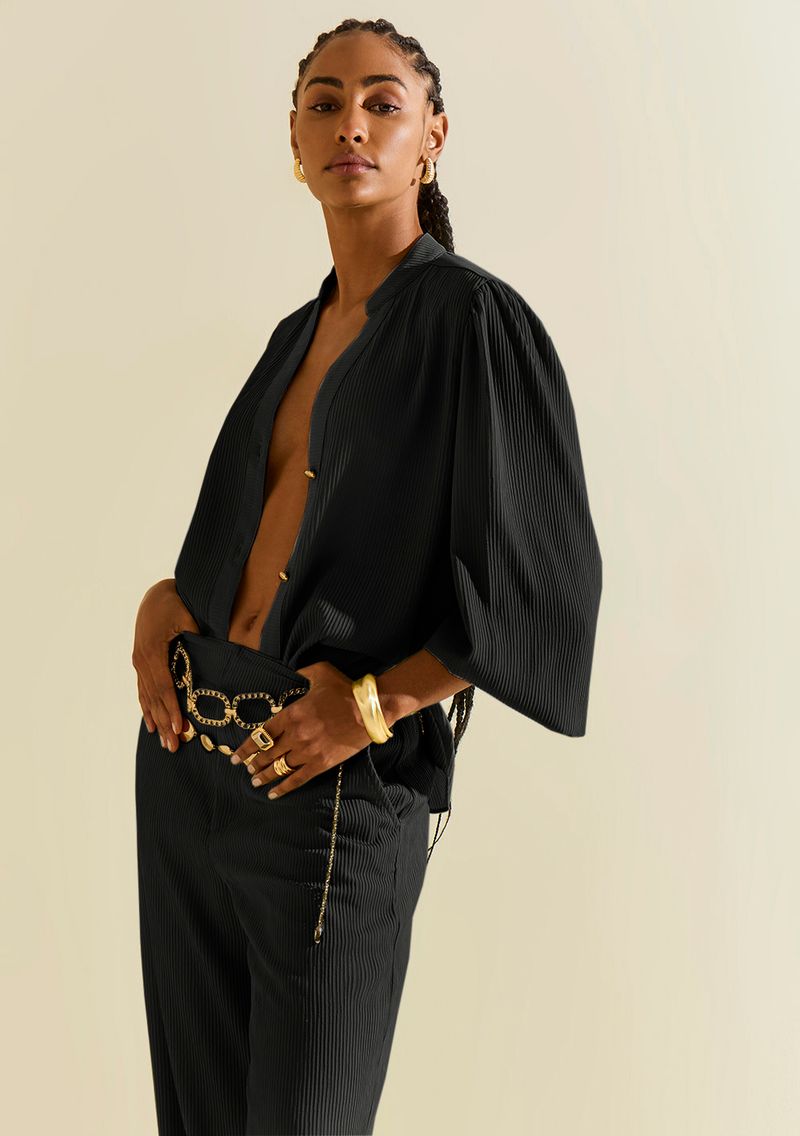 Camisa Morena Rosa Solta Gola Padre Manga Longa Alongada Preto