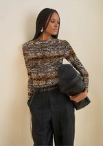 OUTLETLinhasColeçõesRoupasT-shirtsT-shirtsCamiseta Morena Rosa Ajustada Decote Careca Manga Longa Padrão Marrom