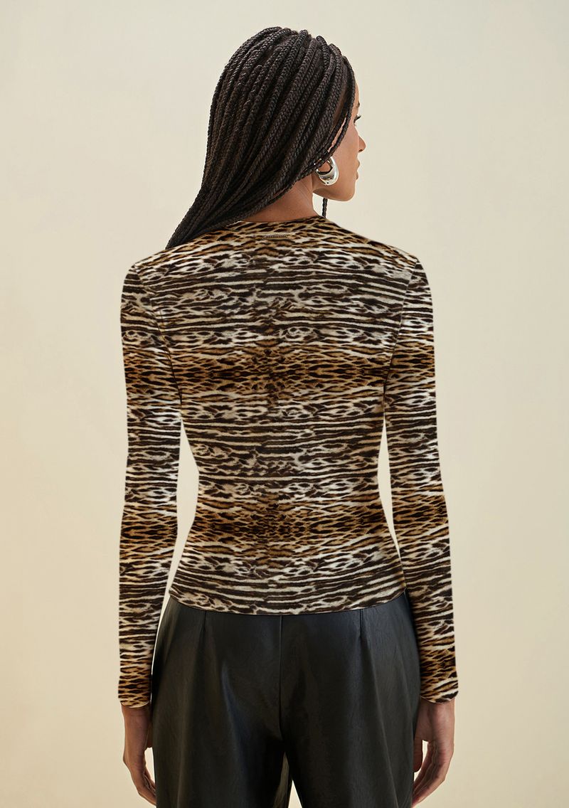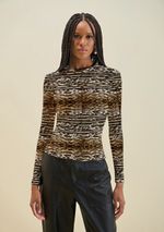 Camiseta Morena Rosa Ajustada Decote Careca Manga Longa Padrão Marrom