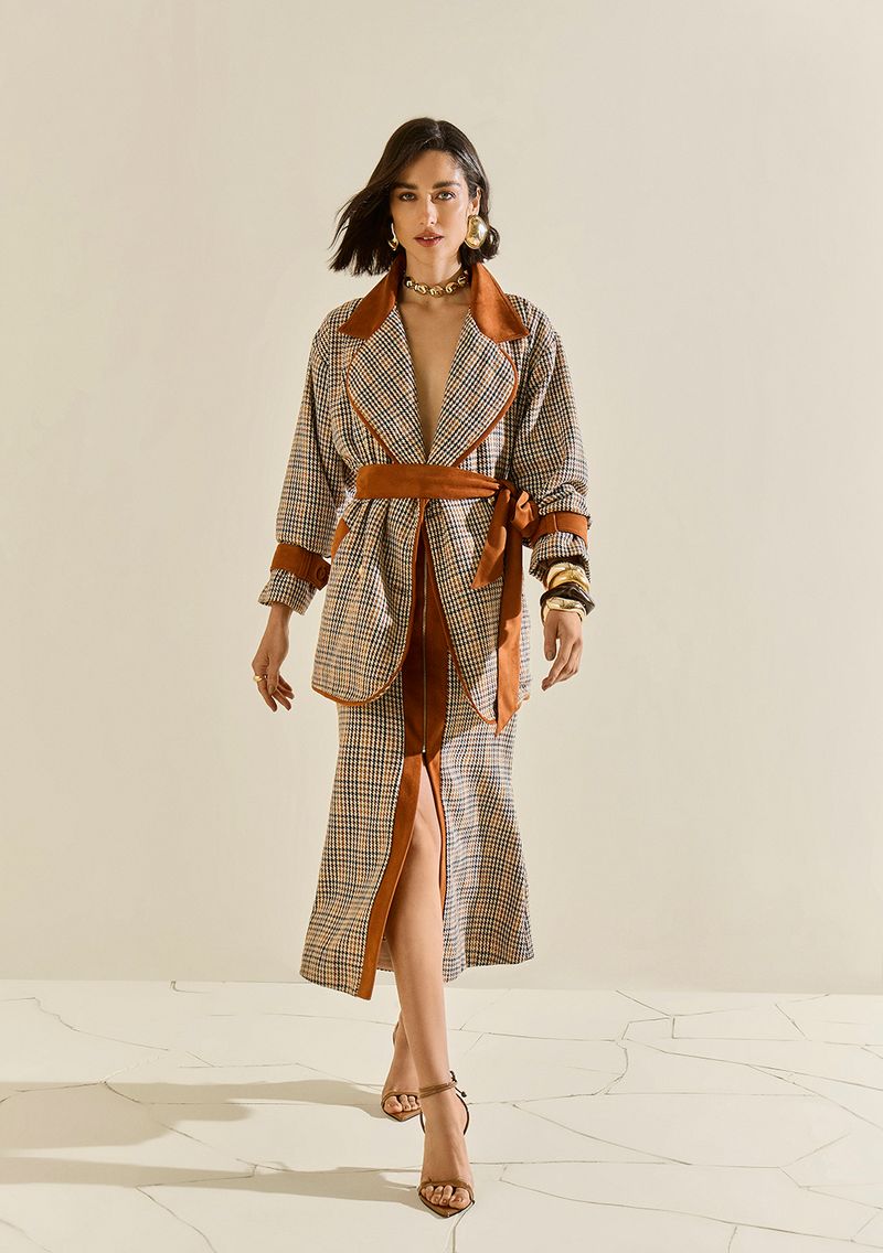 Casaco Morena Rosa Solto Manga Longa Alongado Bege