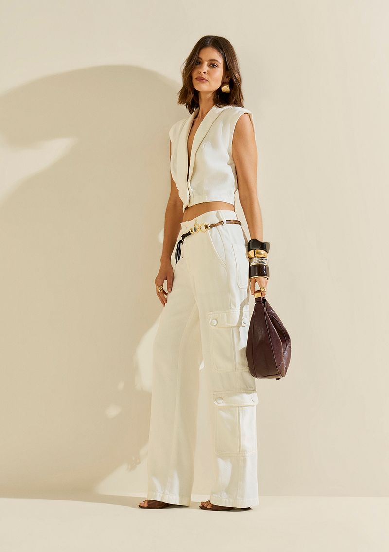 O Colete Ajustado Manga Curta Cropped Off White da coleção À Flor da Pele da Morena Rosa é a peça chave para compor looks autênticos e vibrantes. Confeccionado em sarja de algodão 100%, este colete proporciona um toque leve e confortável, ideal para os dias quentes de primavera e verão. Seu design cropped e ajuste perfeito realça a silhueta, tornando-se versátil para combinações com calças cargo ou skinny, além de ser perfeito para uma saída casual ou um evento mais descontraído. Aposte em acessórios statement para um visual marcante, como colares ou brincos brilhantes, e sinta-se confiante e deslumbrante. Os acessórios não acompanham a peça.