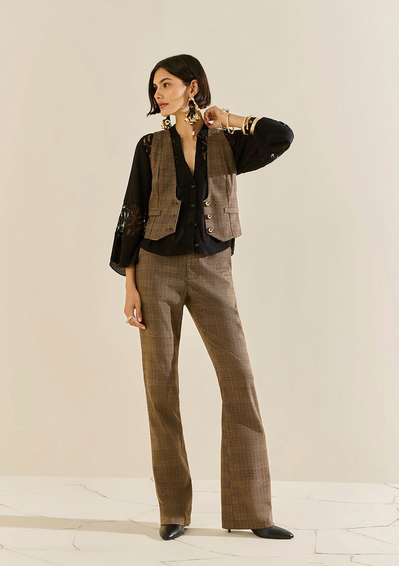 LinhasColeçõesRoupasCasacos e JaquetasCasacos e JaquetasColete Morena Rosa Ajustado Sem Manga Cropped Marrom